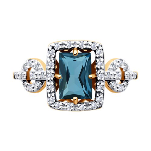 Кольцо создано из комбинаций благородных металлов: нежного красного и чистого белого золота 585 пробы, соединяя два оттенка золота в оригинальной гармонии дизайна. Центральной частью композиции является центральный камень — небесно-голубой топаз, привлекающий взгляд своей прозрачностью и чистотой цвета. Этот топаз окружают маленькие мерцающие фианиты, усиливающие световые блики и делая общий вид кольца особенно привлекательным. Модель демонстрирует прекрасное сочетание современных технологий обработки драгоценных металлов и классической техники ювелирного искусства. Кольцо станет идеальным подарком любимой женщине или украсит собственную коллекцию украшений. Представлено брендом SOKOLOV. Средняя характеристика камней: 38 × Фианит недраг, 1 × Топаз В комплект поставки входит: