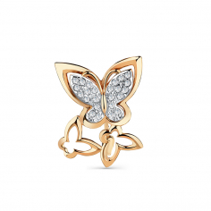 Элегантная брошь «Бабочки» выполнена из красного и белого золота 585 пробы, среднего размера