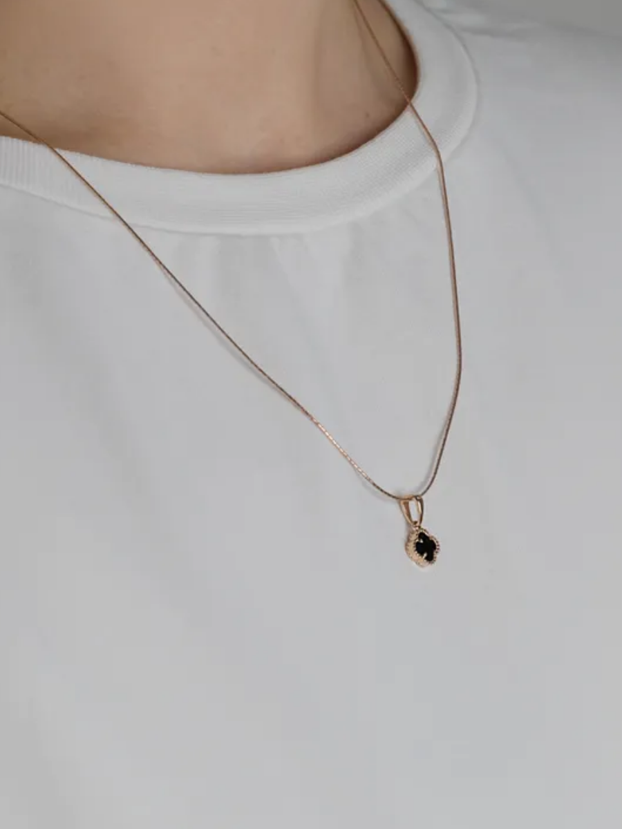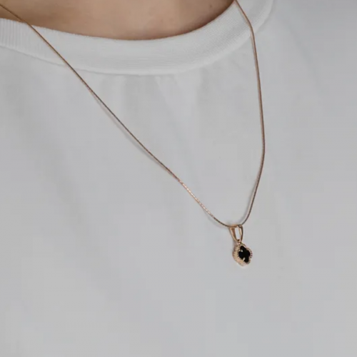 Украшение из красного золота 585 пробы от компании VERONIKA — это стильное воплощение лаконичности и символики. Чёрный агат в форме клевера размером 6×6 мм создаёт выразительный акцент, придавая изделию глубину и характер. Тёплый оттенок золота гармонично подчёркивает насыщенный цвет вставки. Украшение идеально подойдёт тем, кто ценит минимализм с особым смыслом. Средняя характеристика камня: 1 Агат клевер 6.0*6.0 черный В комплект поставки входит: