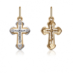 Подвеска в виде нательного креста выполнена из комбинированного золота 585 пробы