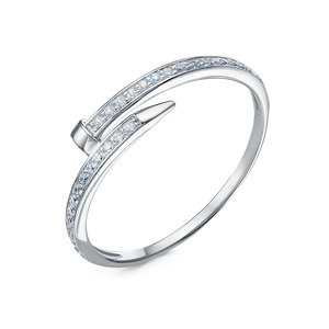 Стильное кольцо в виде гвоздя, украшенного россыпью сверкающих фианитов, выполнено из белого золота 585 пробы
