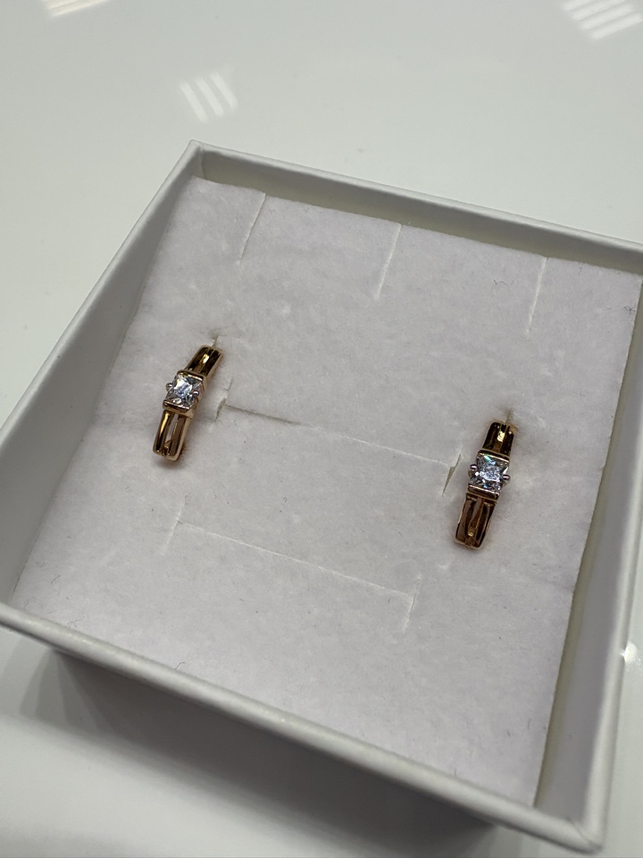 Элегантные серьги с фианитами квадратной формы огранки, выполнены из красного золота 585 пробы