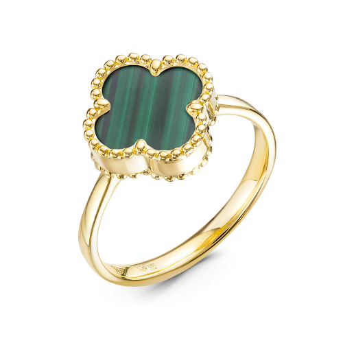 Кольцо, желтое золото, малахит, проба 585