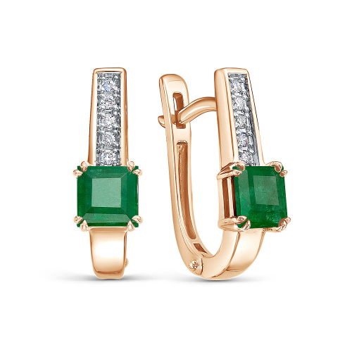 Очаровательные серьги выполнены из благородного сочетания красного и белого золота 585 пробы, выгодно подчёркивая роскошь каждого оттенка металла. Украшенные великолепными изумрудами, играющими насыщенными зелёными оттенками, и сверкающими бриллиантами, придающими дополнительную игривость световым переливам, они станут прекрасным дополнением вашего образа, придавая ему очарование и шарм. Эти ювелирные украшения прекрасно подойдут как для праздничных мероприятий, так и для особых случаев повседневной жизни. Представлено брендом ROSE GRACE. Средняя характеристика камней: 2 Изумруд Кв 5,00х5,00 3/3 - 1,174 ct.; 10 Бр Кр 57 1,20-1,25 120-200 4/6А - 0,078 ct. В комплект поставки входит: