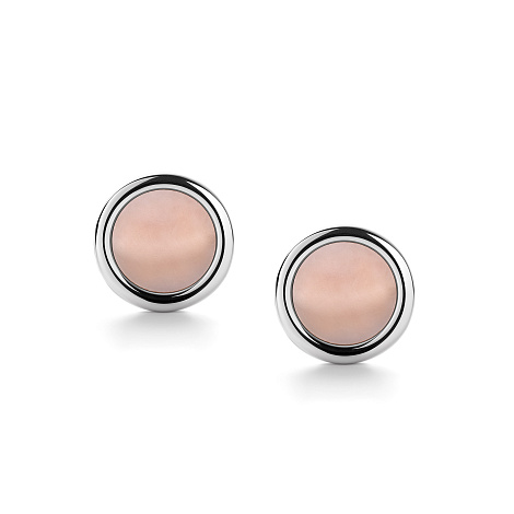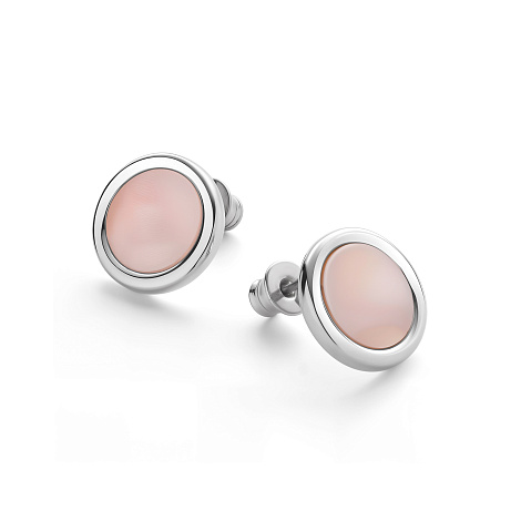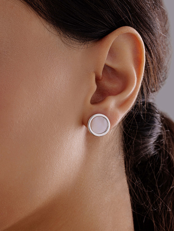 Серьги-пусеты круглой формы с чёрным перламутром выполнены из родированного серебра 925 пробы