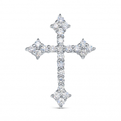 Декоративный крест из белого золота 585 пробы декорирован аккуратными натуральными бриллиантами безупречного качества