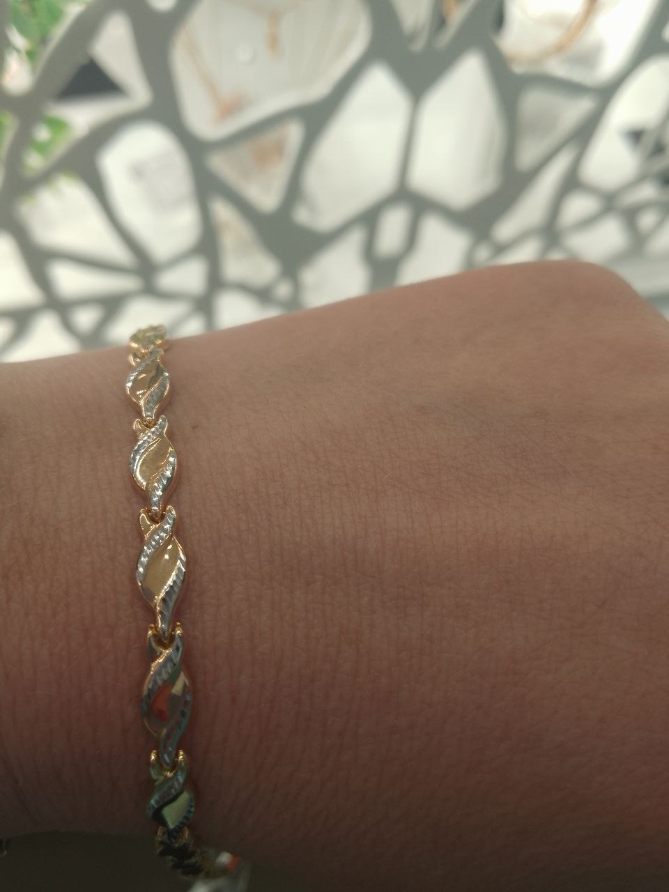 Браслет красивый с комбинированным цветом золота. Замок удобный. браслет нашу каждый день. Качество отличное. Всем рекомендую посетить салон Малахитовая шкатулка , выбор всегда огромный.