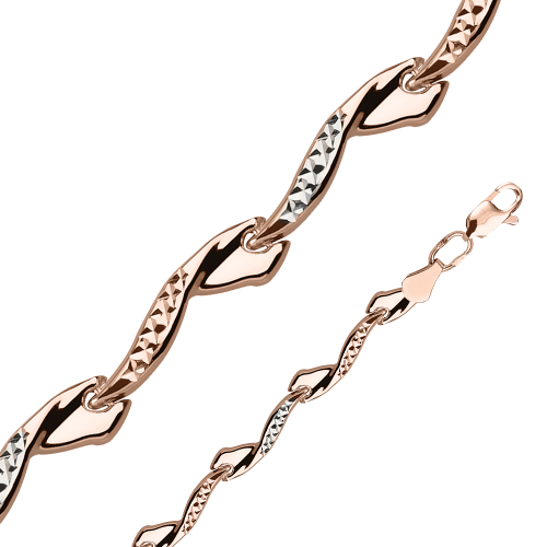 Изящный браслет выполнен с сочетанием красного и белого золота 585 пробы с алмазной обработкой - особым видом обработки золота, при которой поверхность смотрится ярко и эффектно