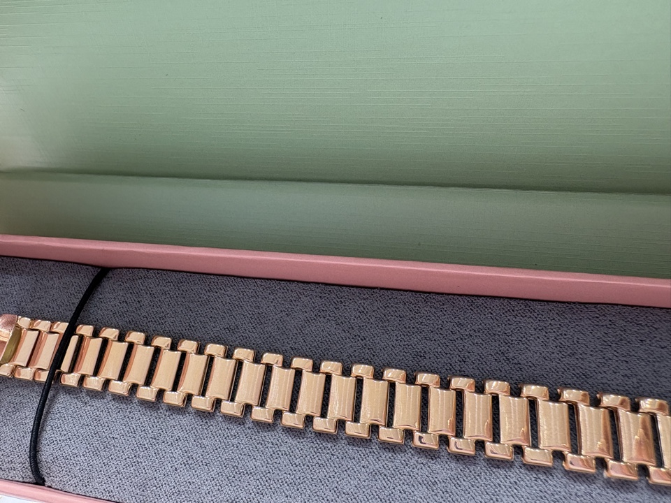 Широкий браслет с фантазийным плетением выполнен из красного золота 585 пробы