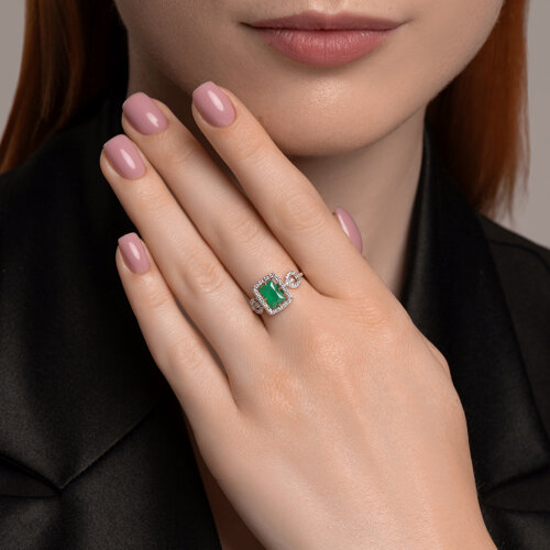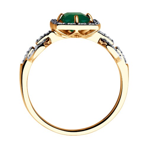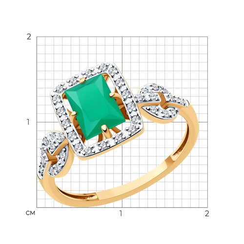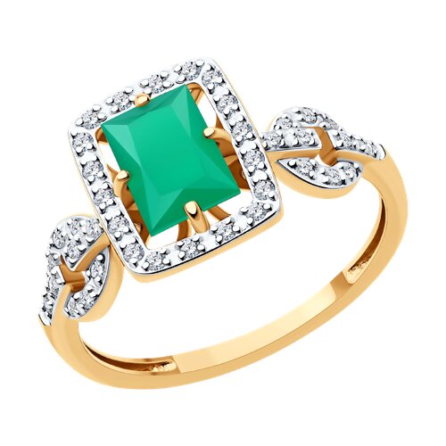 Яркое и привлекательное кольцо с зелёным агатом и фианитами, выполнено с сочетанием красного и белого золота 585 пробы.Это кольцо станет прекрасным подарком для любой женщины, которая ценит красоту и качество. Изделие представлено брендом SOKOLOV. Вставки: 38 × Фианит недраг Бесцветный Круг 1.00 ~0,380 кар, 1 × Агат зеленый Багет 7.00*5.00 ~0,903 кар. В комплект поставки входит:
