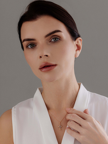 Православный крест из красного и белого золота 585 пробы с бриллиантами представляет собой уникальное сочетание традиционного символизма и ювелирного искусства