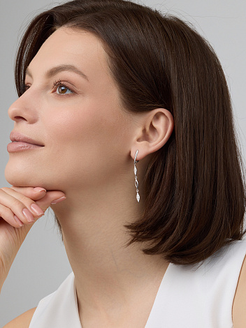 Удлинённые нежные серьги из изысканного белого золота 585-й пробы — воплощение тонкого вкуса и роскоши