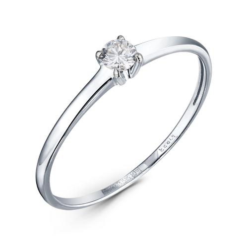 Кольцо с сверкающим бриллиантом выполнено из белого золота 585 пробы