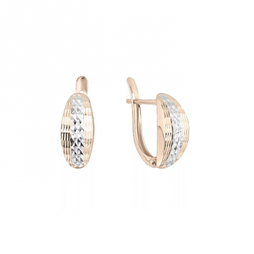 Лаконичные серьги с алмазной гранью выполнены из комбинированного золота 585 пробы