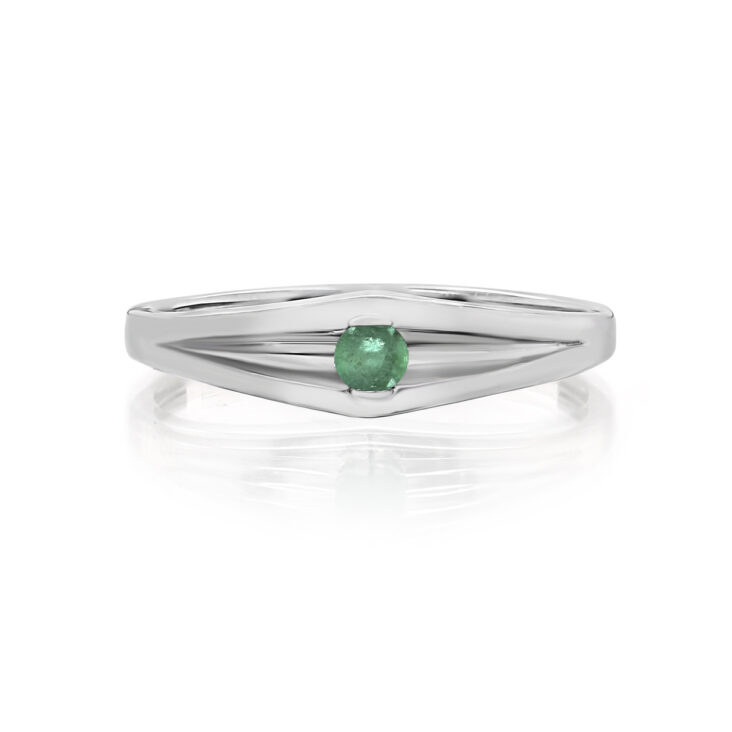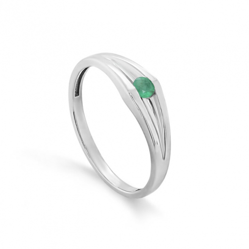 Изящное кольцо с изумрудом выполнено из родированного серебра 925 пробы