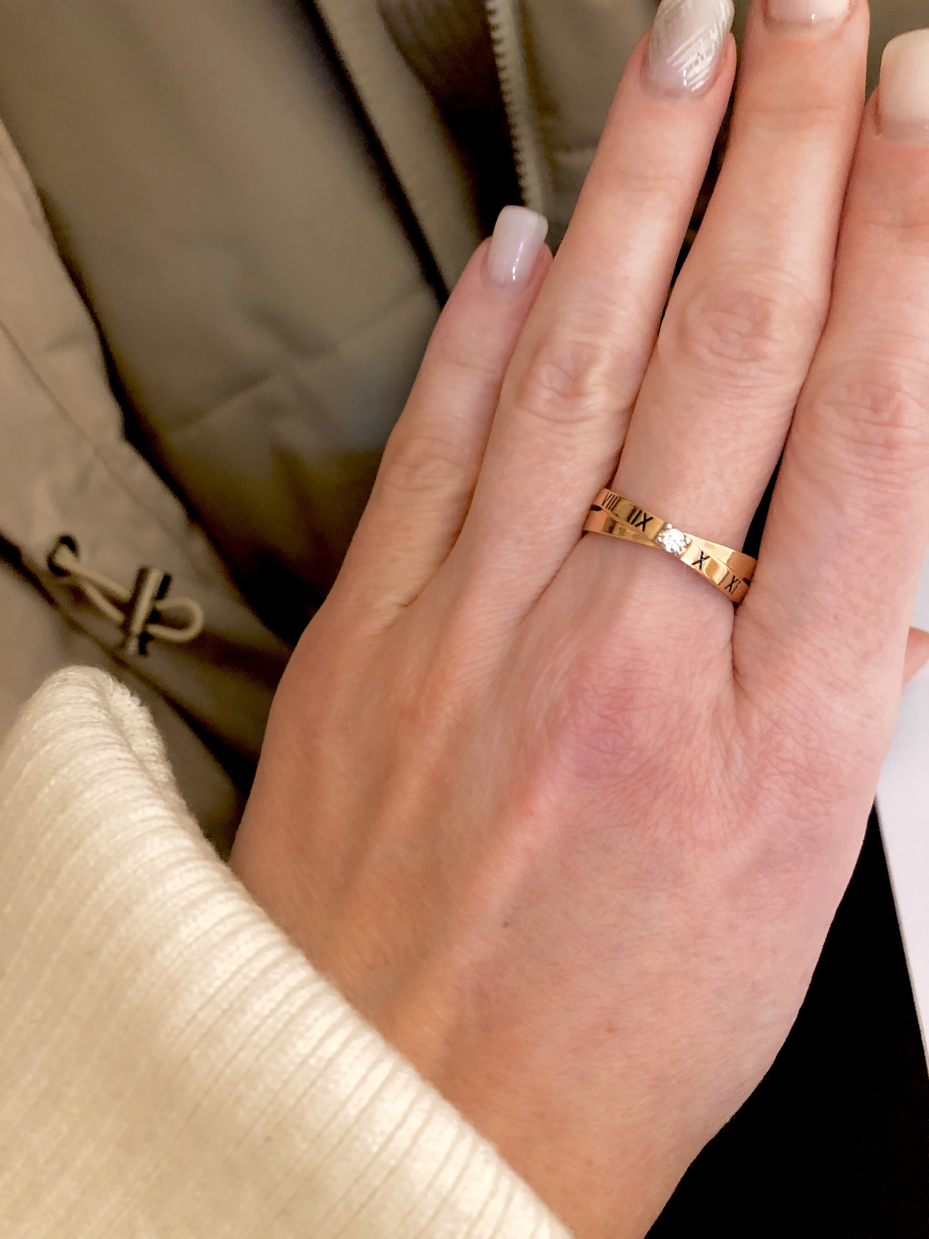 Очень интересное колечко, надеюсь цифры, которые нанесены на металл сохранятся на долго. Смотрится довольно интересно и симпатично.