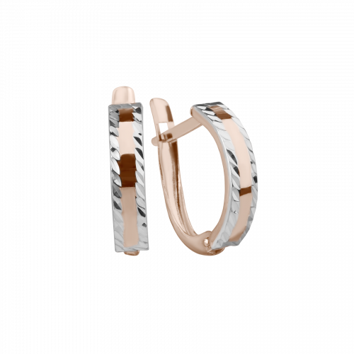 Изящные серьги, украшенные сверкающей алмазной гравировкой, выполнены с сочетанием красного и белого золота 585 пробы