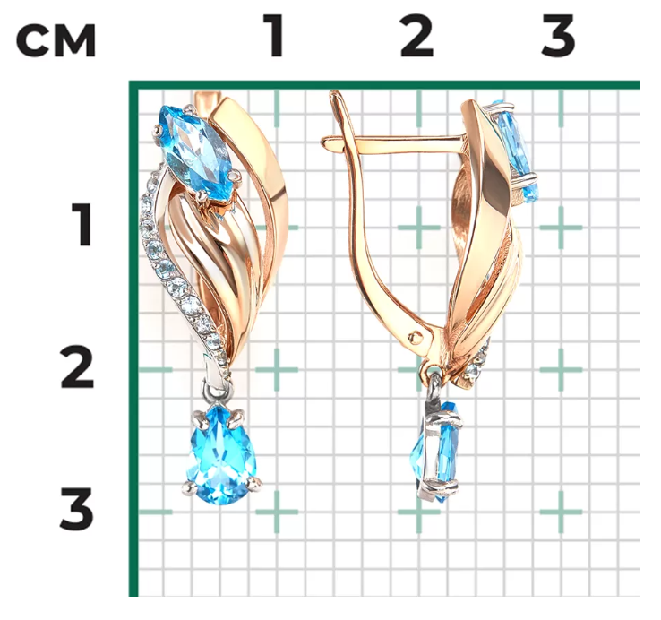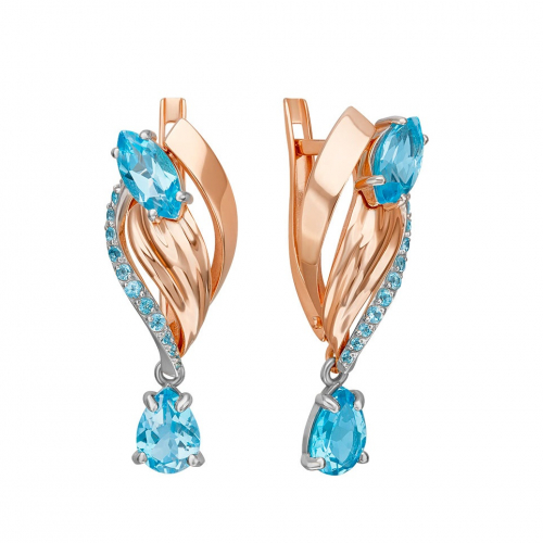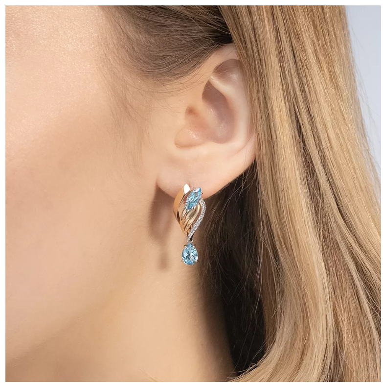 Серьги из коллекции PLATINA ELEMENTS — это настоящая игра света, формы и движения, воплощённая в драгоценном металле и сияющих камнях. Изготовленные из красного и белого золота 585 пробы, они раскрывают концепцию природной гармонии и стихийной энергии, характерную для всей коллекции. Основу композиции формируют выразительные вставки из топаза в разных огранках — изящные маркизы и каплевидные груши подчёркивают динамику дизайна, а мелкие круглые топазы дополняют образ сиянием и детализацией. Благодаря разнообразию форм, серьги выглядят объёмно и живо, переливаясь при каждом движении. Средняя характеристика камней: 2 Топаз Маркиз 8х4 2 Топаз Груша 7х5 16 Топаз Круг 1,25 6 Топаз Круг 1,00 В комплект поставки входит:
