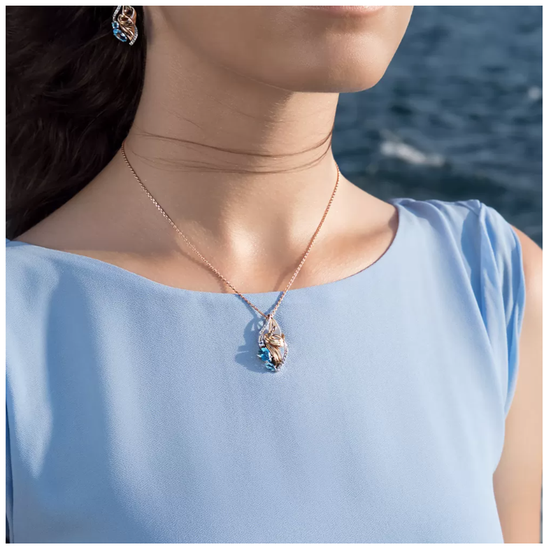 Эта подвеска из коллекции PLATINA ELEMENTS — воплощение природы в ювелирной форме: текучие линии, игра света и гармония элементов. Выполненная из красного и белого золота 585 пробы, она словно объединяет два начала — тёплое и холодное, отражая идею баланса и энергии стихий. В центре композиции — вставка формы "груша" размером 8×6 мм, символизирующая каплю воды или лепесток цветка. Её дополняют элегантный топаз формы "маркиз" и вставка круглой формы 2.5 мм, создающие динамичную многослойную структуру. Мелкие круглые топазы (1.25 мм и 1.00 мм) рассыпаны по поверхности, придавая изделию лёгкое свечение и воздушность. Средняя характеристика камней: 1 Топаз Груша 8х6 1 Топаз Маркиз 6х3 1 Топаз Круг 2,50 14 Топаз Круг 1,25 5 Топаз Круг 1,00 В комплект поставки входит: