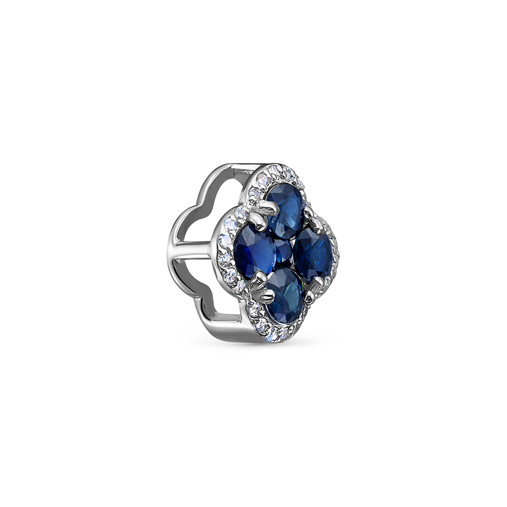 Нежная подвеска выполнена из белого золота 585 пробы, украшена великолепными сапфирами в окружении сияющих бриллиантов