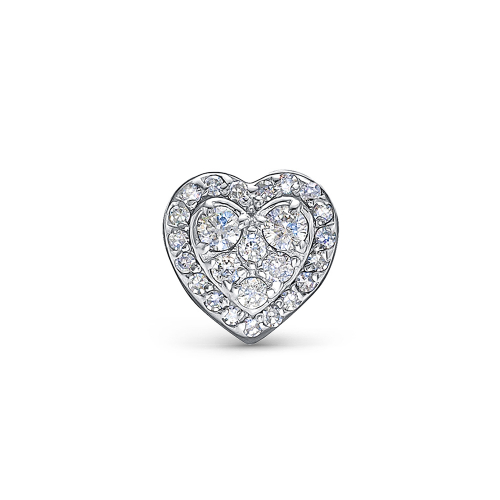 Романтичная подвеска в виде сердечка выполнена из белого золота 585 пробы и украшена россыпью сверкающих бриллиантов
