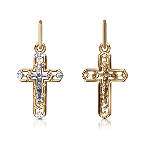 Этот лёгкий и элегантный крест выполнен из красного и белого золота 585 пробы