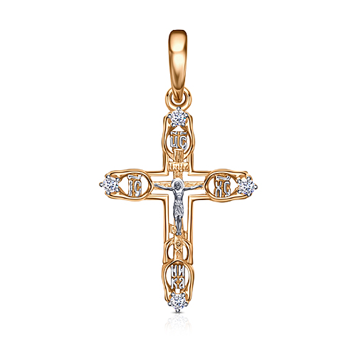 Эта элегантная подвеска-крест изготовлена из красного и белого золота 585 пробы, сочетая два благородных оттенка в одном гармоничном дизайне