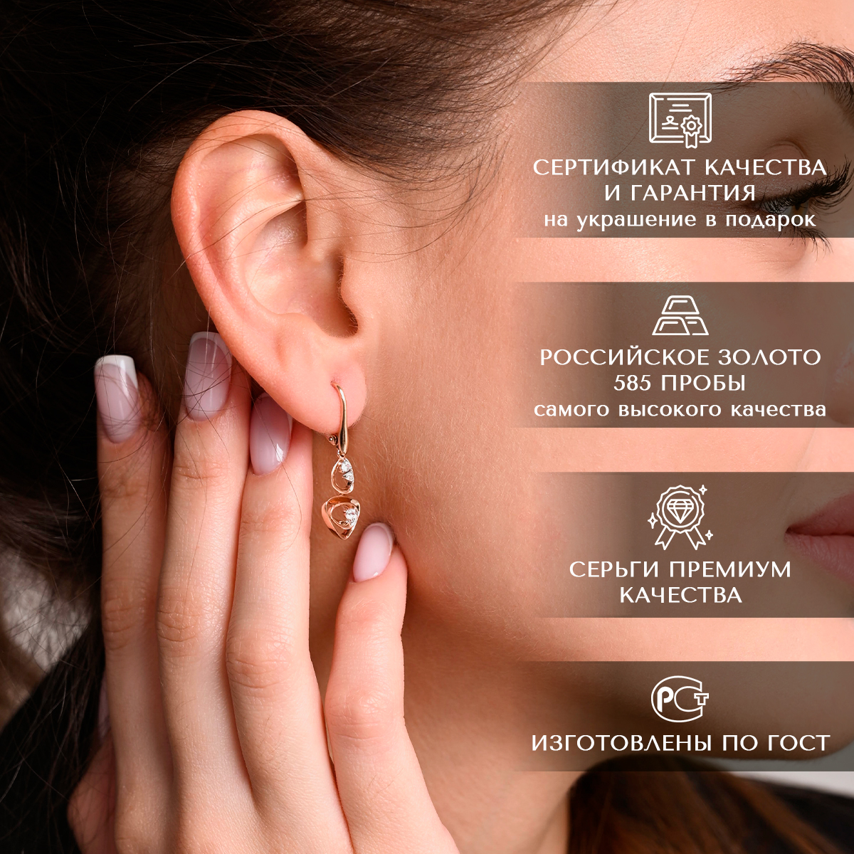 Увидела серьги на сайте, по отзывам очень понравились, сидят отлично и выглядят просто шикарно. Пришла, померила, влюбилась и ушла прямо в них. Однозначно рекомендую к покупке!