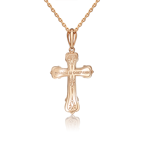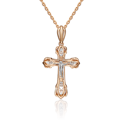 Православный крест из красного и белого золота 585 пробы. Дизайн украшения выполнен в соответствии со всеми канонами Русской Православной Церкви. С обратной стороны с помощью лазерной гравировки выполнена надпись «спаси и сохрани». Нательный крест может стать символичным подарком для любого верующего человека. Изделие представлено брендом PLATINA jewelry. В комплект поставки входит: