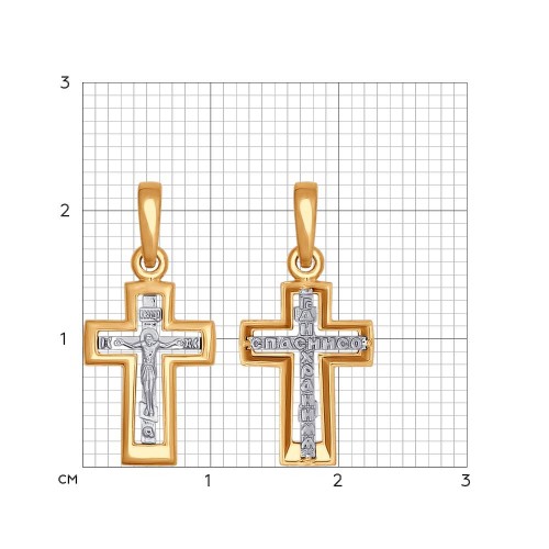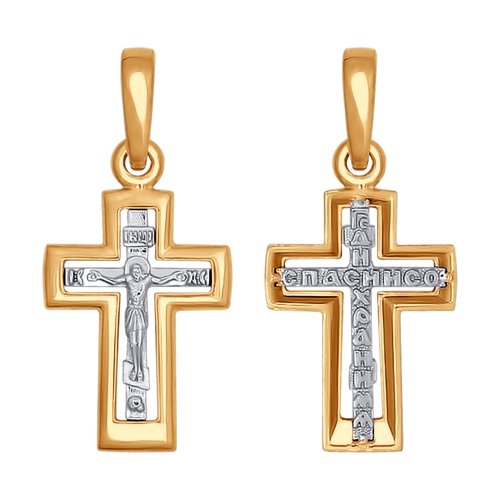 Подвеска в виде крестика исполнена из комбинированного золота 585 пробы