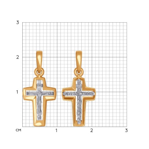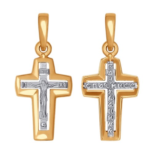 Подвеска в виде крестика исполнена из красного и белого золота 585 пробы. Четкие графичные линии силуэта придают декоративному крестику лаконичность и строгость. В комплект поставки входит: