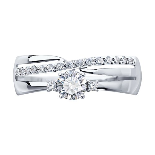 Роскошное кольцо выполнено из белого золота 585 пробы, украшено сверкающей россыпью фианитов