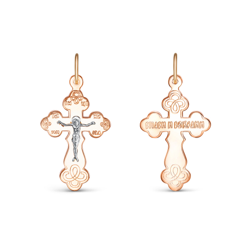 Подвеска в виде классического нательного креста выполнена из комбинированного золота 585 пробы
