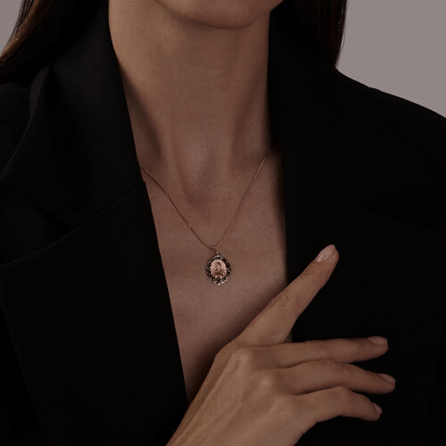 Подвеска из красного и белого золота с иконой Божией Матери – это священное и глубоко символическое украшение, которое несет в себе духовное значение и служит защитником для своего владельца