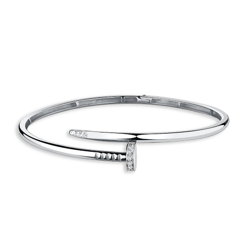 Браслет-гвоздь из белого золота с фианитами — это стильное и современное украшение, подчеркивающее элегантность и утонченность