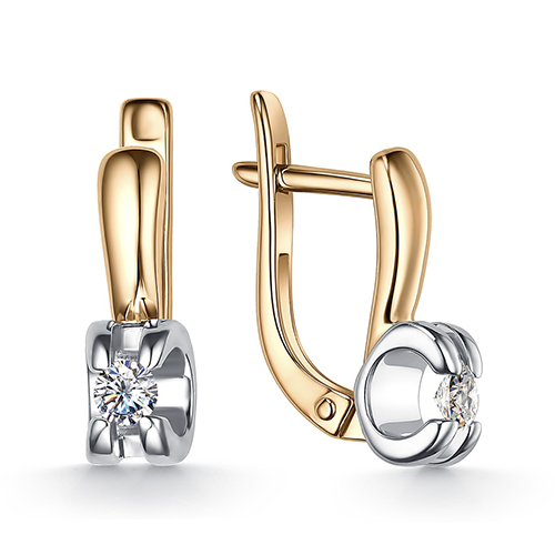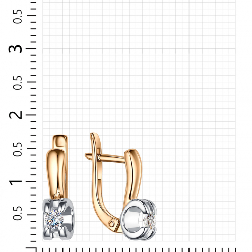 Стильные серьги классического дизайна выполнены из красного и белого золота 585 пробы, украшены сверкающими фианитами