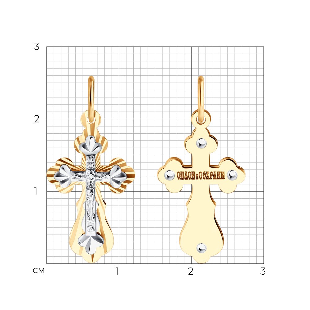 Подвеска в виде нательного креста выполнена из комбинированного золота 585 пробы