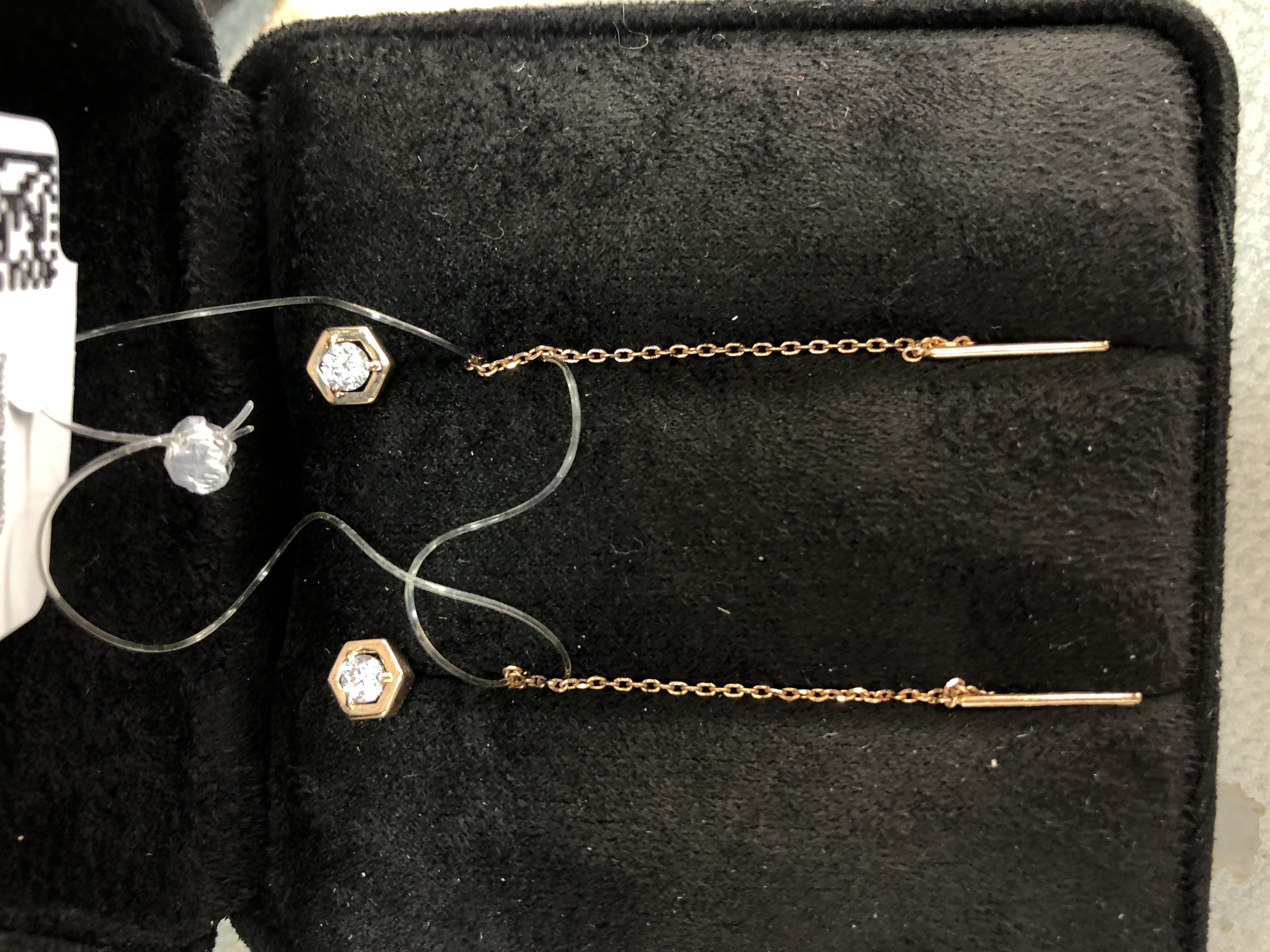 Серьги - цепочки, украшенные сверкающими фианитами, выполнены из красного золота 585 пробы