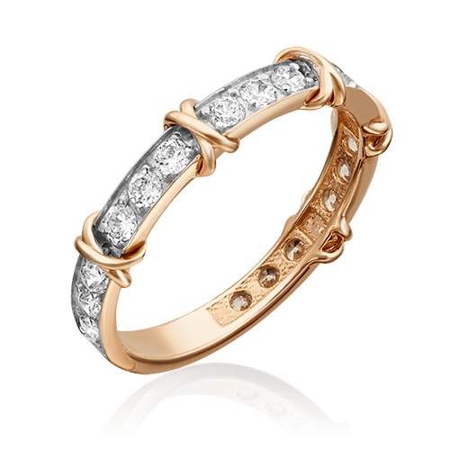 Кольцо из красного и белого золота 585 пробы с фианитами. Дизайн украшения в стиле современная ювелирная классика. Кольцо инкрустировано бецветными финитами. Закрепка камней и выполнена вручную. Украшение подойдёт в качестве вечернего или коктейльного, а также к повседневному стилю. Изделие представлено брендом PLATINA jewelry. Вставки: 18 Фианит. В комплект поставки входит: