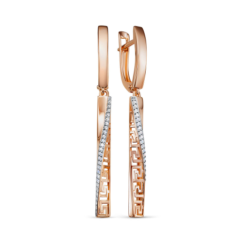 Удлиненные серьги выполнены из сочетания красивого красного и благородного белого золота 585 пробы, что создаёт интересный цветовой контраст и привлекает внимание