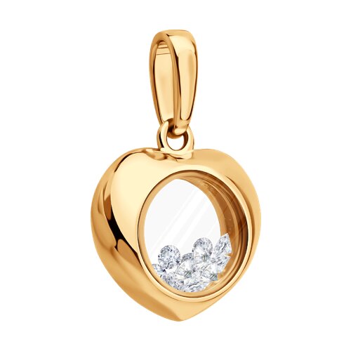 Подвеска выполнена в форме нежного сердца из приятного красного золота 585 пробы, украшенного прозрачными фианитами. Их легкое мерцание наполняет сердце светом и добавляет подвески элегантности. Удобная конструкция позволяет закрепить изделие на любом браслете или цепочке. Такой презент станет красивым проявлением внимания и душевной теплоты. Представлено брендом SOKOLOV. Средняя характеристика камней: 2 × Минеральное стекло, 12 × Фианит недраг В комплект поставки входит: