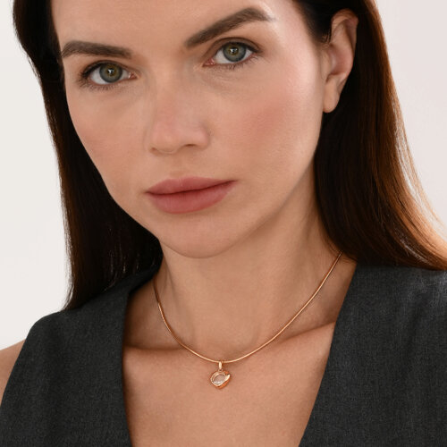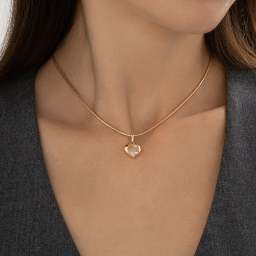 Подвеска выполнена в форме нежного сердца из приятного красного золота 585 пробы, украшенного прозрачными фианитами