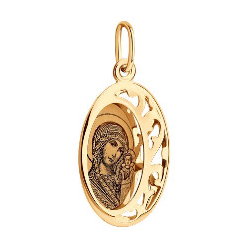 Православная икона - "Пресвятая Богородица Казанская" выполнена из красного золота 585 пробы. Особую оригинальность украшению придает лазерная гравировка, с помощью которой нанесен лик святой. Икона выполнена с учетом Канонов Православной церкви. Изделие представлено брендом SOKOLOV. В комплект поставки входит: