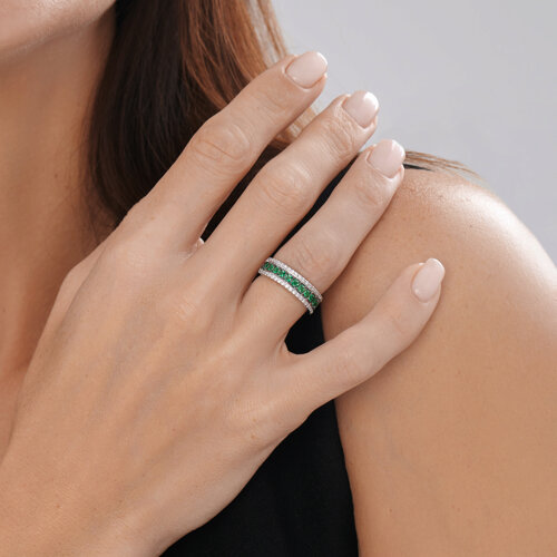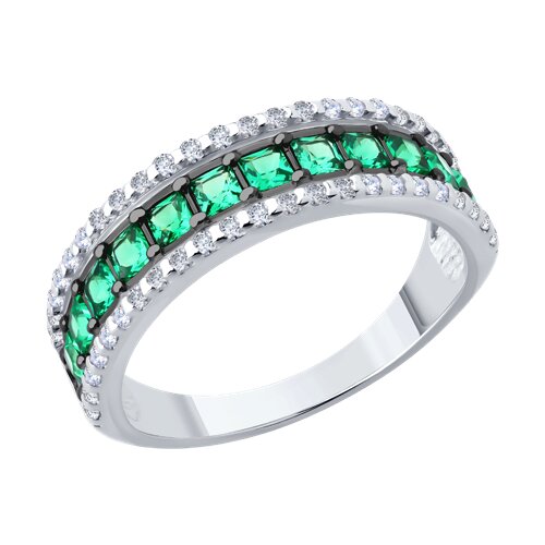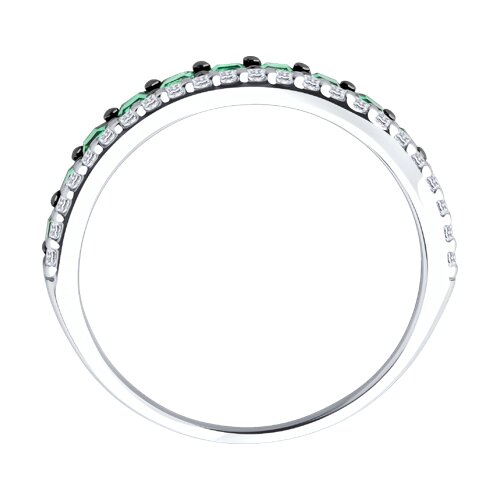 Элегантное кольцо выполнено из качественной стерлинговой стали 925 пробы, характеризующейся прочностью и износостойкостью. Украшение дополнено дорожкой мелких фианитов зеленого и белого цвета, расположенных симметрично, что создает иллюзию живого цветения и естественного природного рисунка. Такое изделие является прекрасной идеей подарка и будет хорошо смотреться как в качестве самостоятельного элемента, так и в составе набора аксессуаров. Представлено брендом SOKOLOV. Средняя характеристика камней: 58 × Фианит недраг В комплект поставки входит: