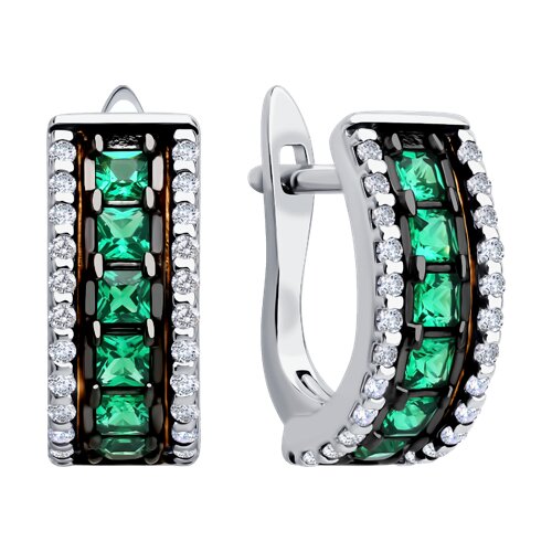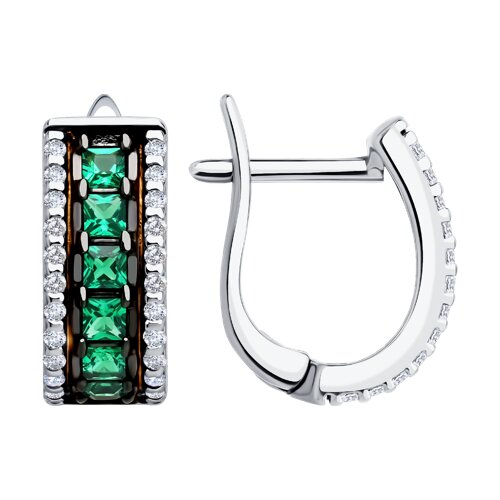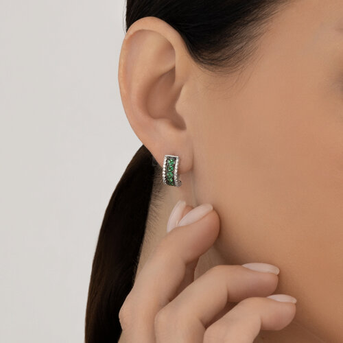 Красивые серебряные серьги обладают приятной композицией зелёных и белых фианитов, которые гармонично взаимодействуют друг с другом, создавая уникальные и привлекательные эффекты