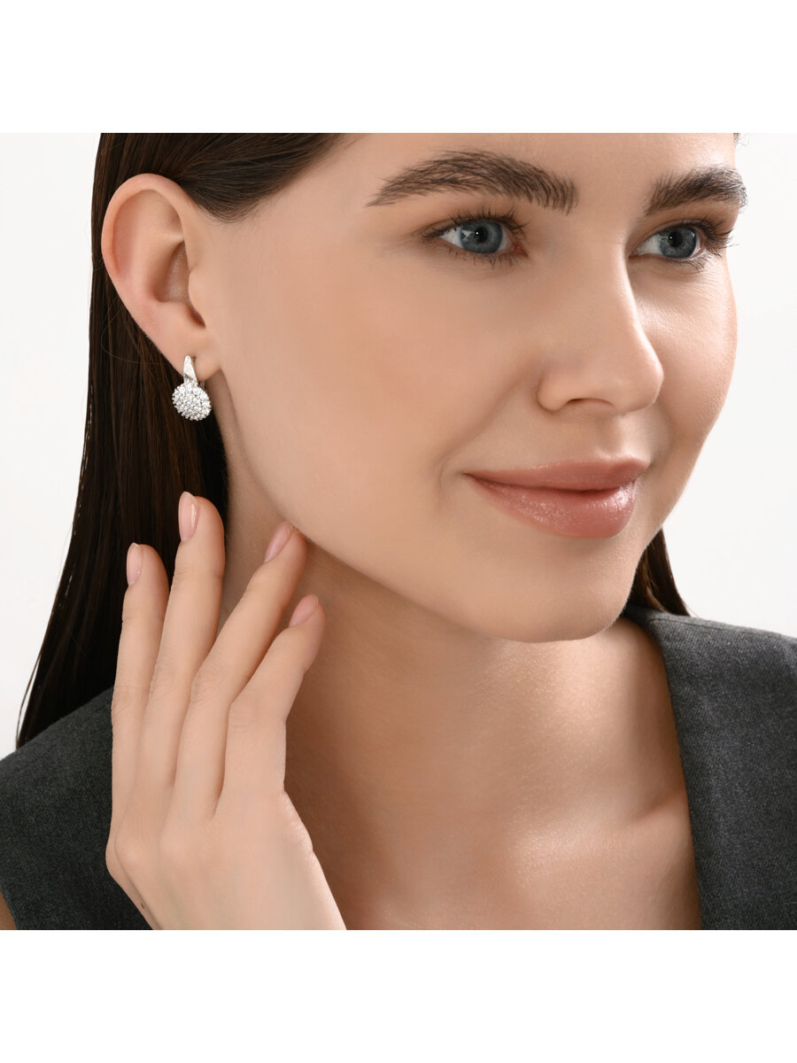 Изящные серебряные серьги сделаны из качественного серебра 925 пробы и украшены сверкающими фианитами, придающими им особый шарм и элегантность