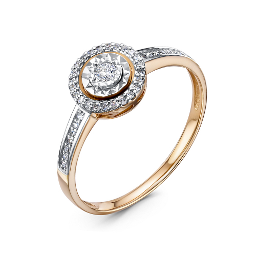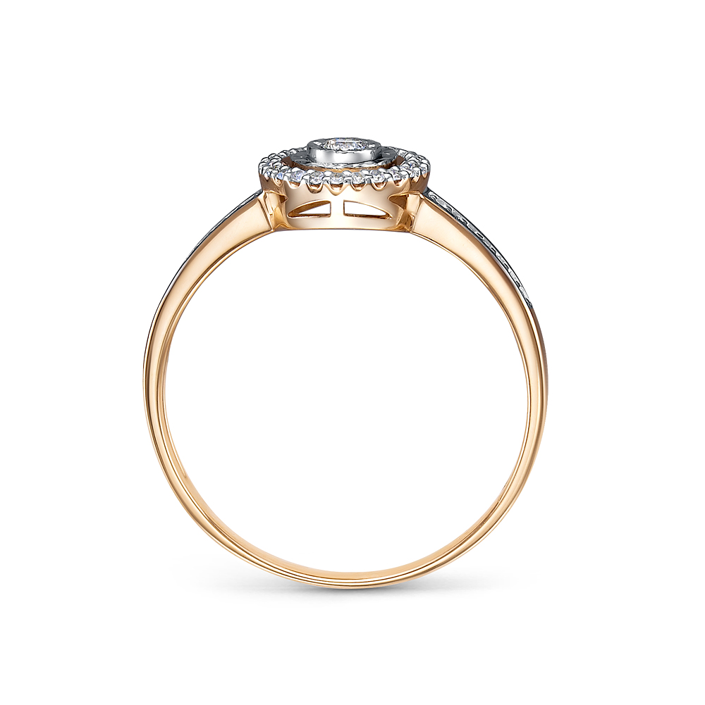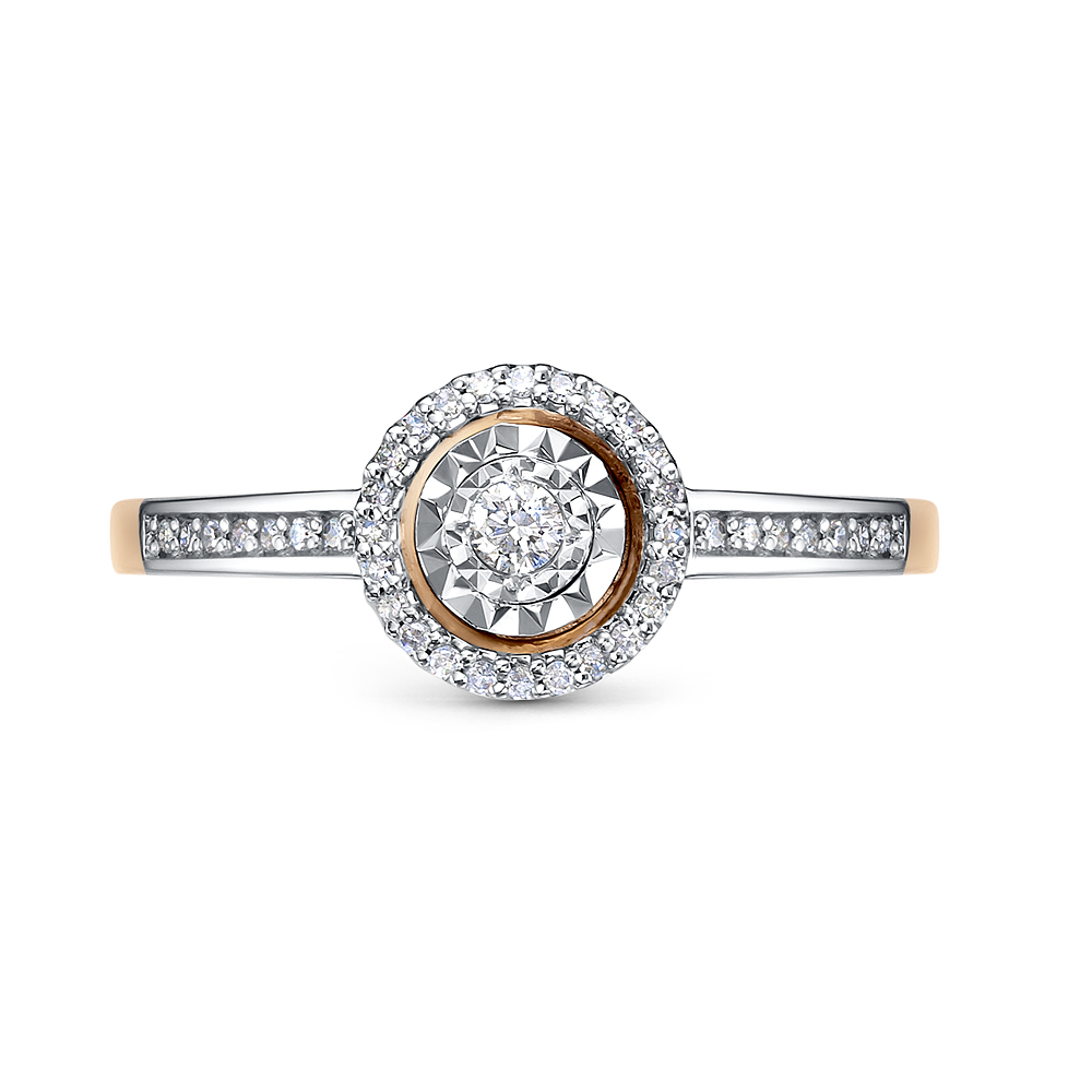 Оригинальное современное кольцо выполнено в сочетании красного и белого золота 585 пробы, с искрящейся россыпью бриллиантов