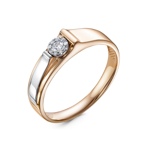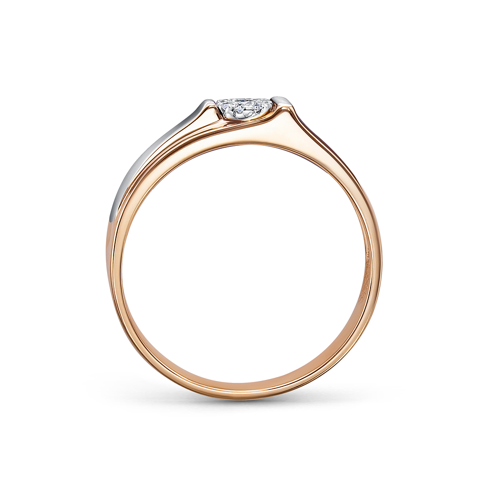 Стильное кольцо, выполнено в сочетании красного и белого золота 585 пробы и украшено сияющими бриллиантами