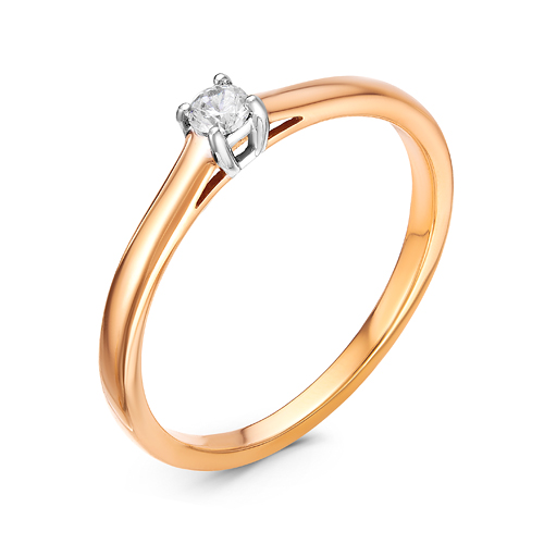 Изящное кольцо классического дизайна с сверкающим бриллиантом полной огранки, 57 граней, выполнено с сочетанием красного и белого золота 585 пробы