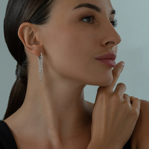 Одиночная удлинённая серьга выполнена из качественного серебра 925 пробы, что обеспечивает устойчивость к коррозии и длительный срок службы